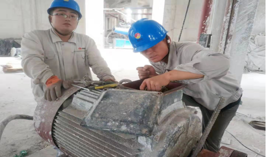 酷暑難當!我還只是走走停停就已經(jīng)大汗淋漓,更何況我們可愛的工友們。進入到電儀裝置現(xiàn)場,這些工友們,真的是恨不得將一個人分成兩個人用,他們是公司安全用電及技改的重要力量,這幾天,他們冒著酷暑,頂著作業(yè)銜接與催促,積極推進檢修進度,他們完成修復(fù)了1102皮帶拉繩開關(guān)及跑偏開關(guān)的檢修、完成了熟料庫頂2825M離心風(fēng)機及2622M斜拉鏈機電機及接線盒的檢修、完成了更換頭排風(fēng)機變頻柜分機以及二次配料底2111M,2031M,2025M斜槽風(fēng)機電機及接線盒的檢修。
