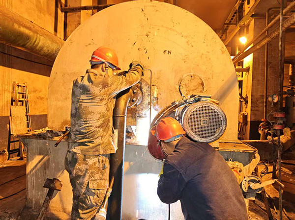 今日任務(wù)是一期八號(hào)發(fā)生器進(jìn)行內(nèi)部檢修,發(fā)生器加水管線酸洗,中和塔堿泵出口閥門更換等。作業(yè)負(fù)責(zé)人需率先進(jìn)入發(fā)生器內(nèi)部排查。辦理受限空間作業(yè)票、氣體檢測(cè)、隔離上鎖……每道程序都關(guān)乎生死。當(dāng)我沿著狹窄的人孔鉆入發(fā)生器時(shí),仿佛進(jìn)入了一個(gè)與世隔絕的鋼鐵世界。手持防爆燈,仔細(xì)檢查每一條耙齒、每一個(gè)托盤。內(nèi)壁上結(jié)著的堅(jiān)硬電石泥結(jié)垢物,需用風(fēng)鎬一點(diǎn)一點(diǎn)剔除,耙齒有損壞的,需要一個(gè)一個(gè)的更換,錘擊聲在密閉空間內(nèi)回蕩,震耳欲聾。汗水很快浸透全身,專注讓不適忘記。
